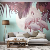 Fototapet Premium Sand - Tre fugles ynde - Flamingoer, Fugle, Natur - 100x70 cm
