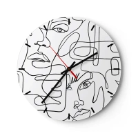 Vægur, Uret - Minimalistiske stregtegninger af ansigter på hvid baggrund - 30x30cm - I sammenfiltrede følelser - Moderne vægdekoration til stue, køkken og soveværelse ARTTOR