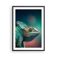 Plakat i sort ramme - En farverig kamæleon på en slående baggrund - 50x70cm - Kan du se mig? Ikke godt... - Moderne vægdekoration til stue og soveværelse ARTTOR