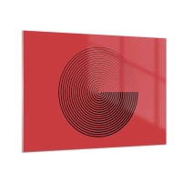 Billede på glas - Sorte koncentriske cirkler på en rød baggrund - 70x50cm - Cirkulær bevægelse - Moderne vægdekoration til stue og soveværelse ARTTOR
