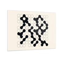 Billede på glas - En sort-hvid grafisk mosaik bestående af forbundne prikker. - 70x50cm - Kinesisk spil - variation - Moderne vægdekoration til stue og soveværelse ARTTOR