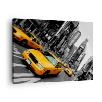 Lærredstryk - Billede på lærred - Gule taxaer på gaderne i New York - 70x50cm - Storbyens sol - Moderne vægdekoration til stue og soveværelse ARTTOR