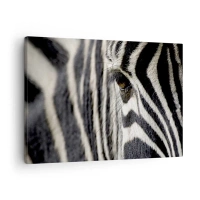 Lærredstryk - Billede på lærred - Nærbillede af et zebraøje med sorte og hvide striber - 70x50cm - Stribet portræt - Moderne vægdekoration til stue og soveværelse ARTTOR