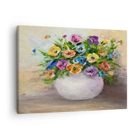 Lærredstryk - Billede på lærred - En farverig buket blomster i en hvid vase - 70x50cm - Stilleben med hvid vase - Moderne vægdekoration til stue og soveværelse ARTTOR