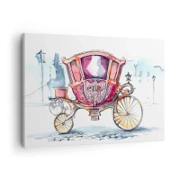 Lærredstryk - Billede på lærred - En stilfuld illustration af en antik vogn i pastelfarver. - 70x50cm - Til brylluppet eller til ballet? - Moderne vægdekoration til stue og soveværelse ARTTOR