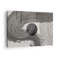 Lærredstryk - Billede på lærred - Geometriske linjer og ovaler i monokromatiske nuancer - 70x50cm - Oval vinder - Moderne vægdekoration til stue og soveværelse ARTTOR