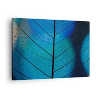 Lærredstryk - Billede på lærred - Nærbillede af et blåt blad med synlige åredetaljer - 70x50cm - Indviklet konstruktion - Moderne vægdekoration til stue og soveværelse ARTTOR