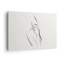 Lærredstryk - Billede på lærred - En minimalistisk skitse af en kvindes silhuet mod en lys baggrund. - 70x50cm - Bølge af melankoli - Moderne vægdekoration til stue og soveværelse ARTTOR