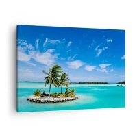 Lærredstryk - Billede på lærred - En eksotisk ø med palmer i turkisblåt vand - 70x50cm - Paradis på jorden - Moderne vægdekoration til stue og soveværelse ARTTOR