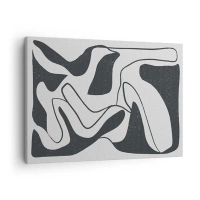 Lærredstryk - Billede på lærred - Sort-hvid abstraktion med organiske former - 70x50cm - Abstrakt leg i en labyrint - Moderne vægdekoration til stue og soveværelse ARTTOR