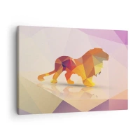 Lærredstryk - Billede på lærred - Geometrisk silhuet af en løve i gule og orange nuancer - 70x50cm - Diamantkongen - Moderne vægdekoration til stue og soveværelse ARTTOR