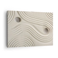 Lærredstryk - Billede på lærred - Minimalistisk zen-design med sand og sten - 70x50cm - Et strejf af varme - Moderne vægdekoration til stue og soveværelse ARTTOR
