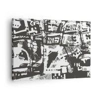 Lærredstryk - Billede på lærred - Abstrakt monokrom retro mønster - 70x50cm - Orden eller kaos? - Moderne vægdekoration til stue og soveværelse ARTTOR