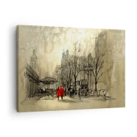 Lærredstryk - Billede på lærred - En rød figur i nostalgiske bymiljøer - 70x50cm - En date i London-tågen - Moderne vægdekoration til stue og soveværelse ARTTOR
