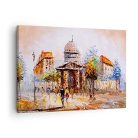 Lærredstryk - Billede på lærred - Impressionistisk byscene med en historisk bygning - 70x50cm - En parisisk spadseretur - Moderne vægdekoration til stue og soveværelse ARTTOR