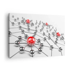 Lærredstryk - Billede på lærred - Et netværk af metalkugler med røde accenter - 70x50cm - Sølvnet - Moderne vægdekoration til stue og soveværelse ARTTOR