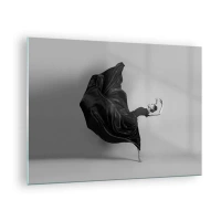 Billede på glas - En danser i en sort kjole svæver dynamisk i luften - 70x50cm - Bevinget af musik - Moderne vægdekoration til stue og soveværelse ARTTOR