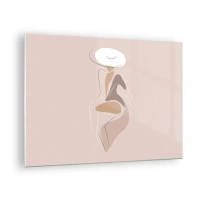 Billede på glas - En minimalistisk silhuet af en kvinde på en beige baggrund - 70x50cm - Et ikon for pigelivet - Moderne vægdekoration til stue og soveværelse ARTTOR