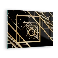 Billede på glas - Gyldne geometriske mønstre på en sort baggrund - 70x50cm - Gylden geometri - Moderne vægdekoration til stue og soveværelse ARTTOR