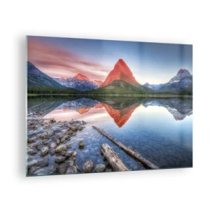 Billede på glas - En bjergtop spejlet i en rolig sø - 70x50cm - Varme og kulde - Moderne vægdekoration til stue og soveværelse ARTTOR