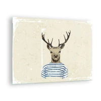 Billede på glas - Grafik af en hjort i en sømandsskjorte på en lys baggrund - 70x50cm - Fordi jeg kan lide stribede skjorter! - Moderne vægdekoration til stue og soveværelse ARTTOR