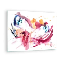 Billede på glas - Portræt af en kvinde i akvarelfarver og detaljer - 70x50cm - Portræt malet med en regnbue - Moderne vægdekoration til stue og soveværelse ARTTOR