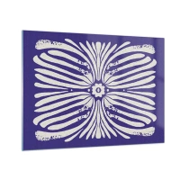 Billede på glas - Symmetrisk etnisk mønster på en lilla baggrund - 70x50cm - Etniske inspirationer - Moderne vægdekoration til stue og soveværelse ARTTOR