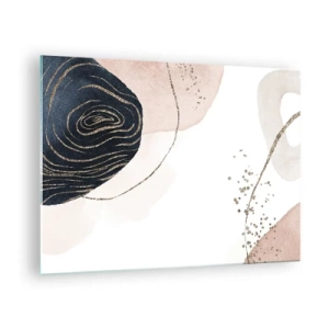 Billede på glas - Abstrakte former med gulddetaljer - 70x50cm - Alt flyder - Moderne vægdekoration til stue og soveværelse ARTTOR