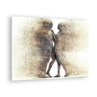 Billede på glas - Abstrakte silhuetter af to figurer i støvet stil - 70x50cm - Fra støv steg de til kærlighed - Moderne vægdekoration til stue og soveværelse ARTTOR
