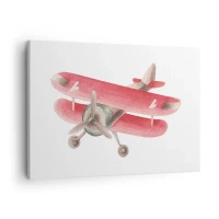Lærredstryk - Billede på lærred - Rød retro flyvemaskine på en hvid baggrund - 70x50cm - Klar til at flyve højt - Moderne vægdekoration til stue og soveværelse ARTTOR