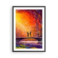 Plakat i sort ramme - Et par på en bro omgivet af et farverigt landskab - 50x70cm - Himlen elsker dem også - Moderne vægdekoration til stue og soveværelse ARTTOR