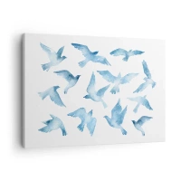 Lærredstryk - Billede på lærred - En diskret akvarel, der skildrer flyvende fugle - 70x50cm - Blåfugle - Moderne vægdekoration til stue og soveværelse ARTTOR