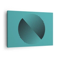 Lærredstryk - Billede på lærred - En minimalistisk cirkel med linjer på en turkis baggrund. - 70x50cm - Cirklen - en geometrisk variation - Moderne vægdekoration til stue og soveværelse ARTTOR