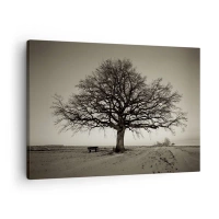 Lærredstryk - Billede på lærred - Et ensomt træ i en sepiamark - 70x50cm - Herfra og til evigheden - Moderne vægdekoration til stue og soveværelse ARTTOR