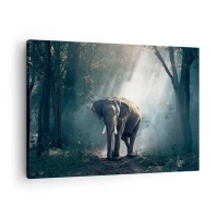 Lærredstryk - Billede på lærred - Elefant i skovlyset - 70x50cm - En fredelig gåtur - Moderne vægdekoration til stue og soveværelse ARTTOR