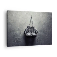 Lærredstryk - Billede på lærred - Gamle boksehandsker mod væggen - 70x50cm - En tid med kamp og en tid med fred - Moderne vægdekoration til stue og soveværelse ARTTOR