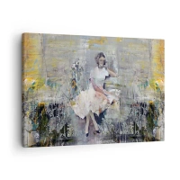Lærredstryk - Billede på lærred - Kunstnerisk portræt af en kvinde i pastelfarver - 70x50cm - Klassisk og moderne - Moderne vægdekoration til stue og soveværelse ARTTOR