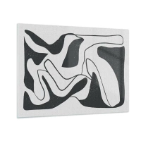 Billede på glas - Sort-hvide abstrakte former, der ligner en labyrint - 70x50cm - Abstrakt leg i en labyrint - Moderne vægdekoration til stue og soveværelse ARTTOR