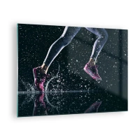 Billede på glas - Løber gennem vand i sportssko mod en mørk baggrund - 70x50cm - Så meget som du kan - Moderne vægdekoration til stue og soveværelse ARTTOR