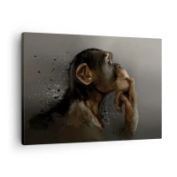Lærredstryk - Billede på lærred - Portræt af en abe i en reflekterende positur mod en grå baggrund - 70x50cm - Helt sikkert en tænker - Moderne vægdekoration til stue og soveværelse ARTTOR