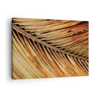 Lærredstryk - Billede på lærred - Nærbillede af et tørt palmeblad i varme toner - 70x50cm - Kokosnød guld - Moderne vægdekoration til stue og soveværelse ARTTOR