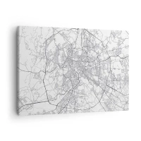 Lærredstryk - Billede på lærred - Detaljeret sort-hvidt bykort - 70x50cm - Berlins blomst - Moderne vægdekoration til stue og soveværelse ARTTOR
