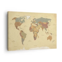 Lærredstryk - Billede på lærred - Et stiliseret verdenskort i beige og pastelfarver. - 70x50cm - For dig - hele verden - Moderne vægdekoration til stue og soveværelse ARTTOR