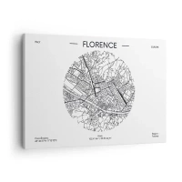 Lærredstryk - Billede på lærred - Et kort over Firenze i minimalistisk sort-hvid stil - 70x50cm - Anatomi af Firenze - Moderne vægdekoration til stue og soveværelse ARTTOR