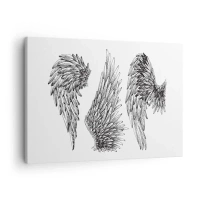 Lærredstryk - Billede på lærred - Tre sort-hvide skitser af vinger i minimalistisk stil. - 70x50cm - Og du kan blive en engel - Moderne vægdekoration til stue og soveværelse ARTTOR