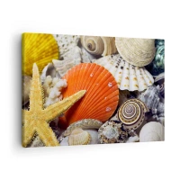 Lærredstryk - Billede på lærred - Skaller og søstjerner i en marin sammensætning - 70x50cm - Havets skatte - Moderne vægdekoration til stue og soveværelse ARTTOR