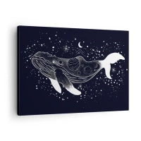 Lærredstryk - Billede på lærred - En grafisk illustration af en hval i rumalderstil. - 70x50cm - I universets ocean - Moderne vægdekoration til stue og soveværelse ARTTOR