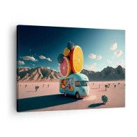 Lærredstryk - Billede på lærred - Frugtvogn i et ørkenlandskab - 70x50cm - En smag af ferie - Moderne vægdekoration til stue og soveværelse ARTTOR