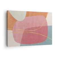 Lærredstryk - Billede på lærred - Abstrakte former i pastelfarver med fine linjer - 70x50cm - Pastelkomposition med guldtråd - Moderne vægdekoration til stue og soveværelse ARTTOR