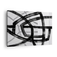 Lærredstryk - Billede på lærred - Sort-hvid abstraktion med dynamiske linjer og hvirvler - 70x50cm - Kombination af modsætninger - Moderne vægdekoration til stue og soveværelse ARTTOR